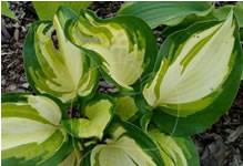 Хоста Almost Heaven имеет белые листья с зеленой каймой, это хоста