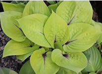Хоста имеет желтые листья, это небольшая или средняя хоста с лавандовыми