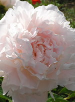 Травянистый, гибрид. Крупные, розово-кремовые, махровые цветы.