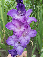 Стройный, сине-голубой с чуть более густым пятном на нижнем лепестке.