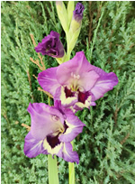 Фиолетово-синий с белым пятном и каймой на верхних внутренних лепестках.
