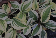 Плотные, округлые сине-зеленые листочки с кремово-желтым краем.