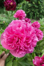 Травянистый, гибрид. Крупные, розово-кремовые, махровые цветы.